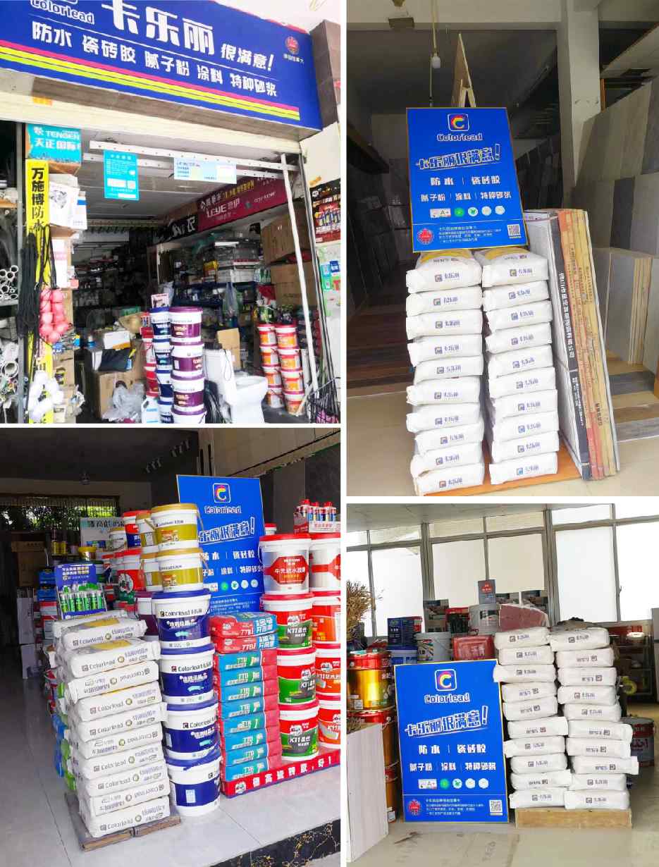 从2022年1月份开始,卡乐丽家装用材的防水、瓷砖胶、腻子粉大区踏踏实实做好渠道开发,深耕渠道做好铺货和标准陈列。